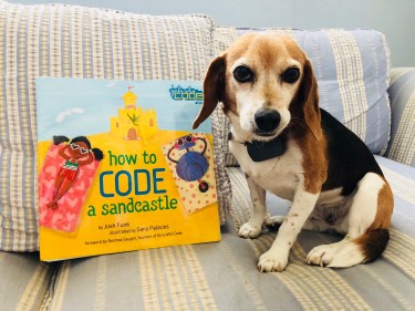 On the last day of summer vacation, Pearl decides it’s her final opportunity to build a sand castle. Because Frisbees, surf boards, and dogs keep ruining her creations, Pearl devises a new plan involving her robot Pascal. In order for Pascal to assist her, Pearl must tell him how to build a sandcastle in code. She explains how coders must take one big problem and break it into smaller problems.