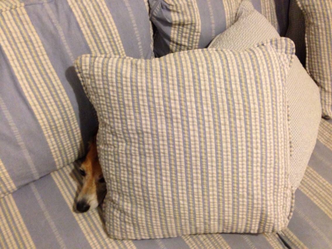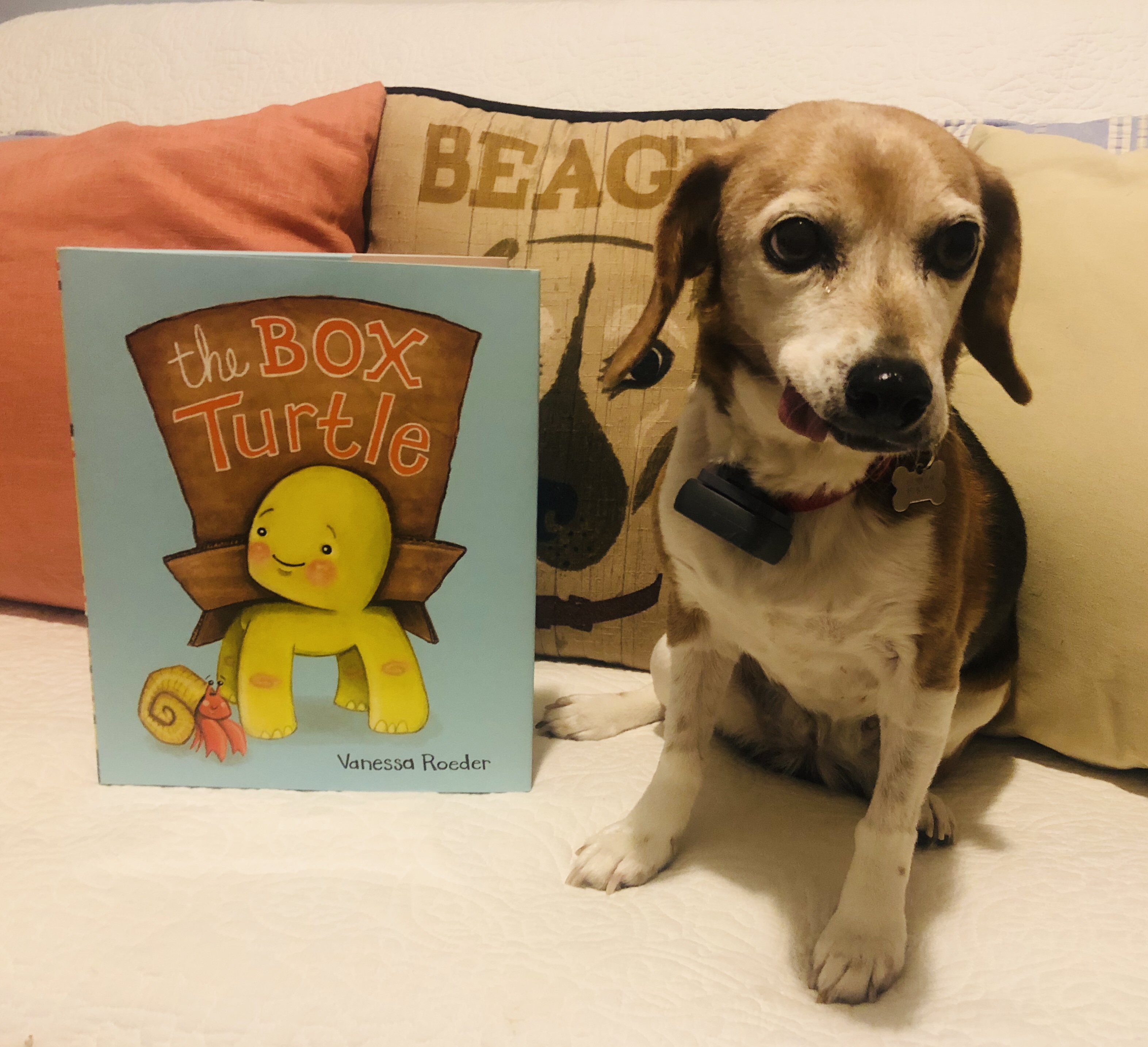 Author Lisa Rogers’s amusing story really resonated with me because my sweet Etta has been known to show her stubborn side especially on a walk. Unlike Hound who won’t move, Etta would never let me stop to talk to a neighbor. She was always on the go ready to return home for a treat. Like Hound, Etta (years ago, when she could hear) hated thunder. She always went to her safe spot in the den and would burrow under pillows.