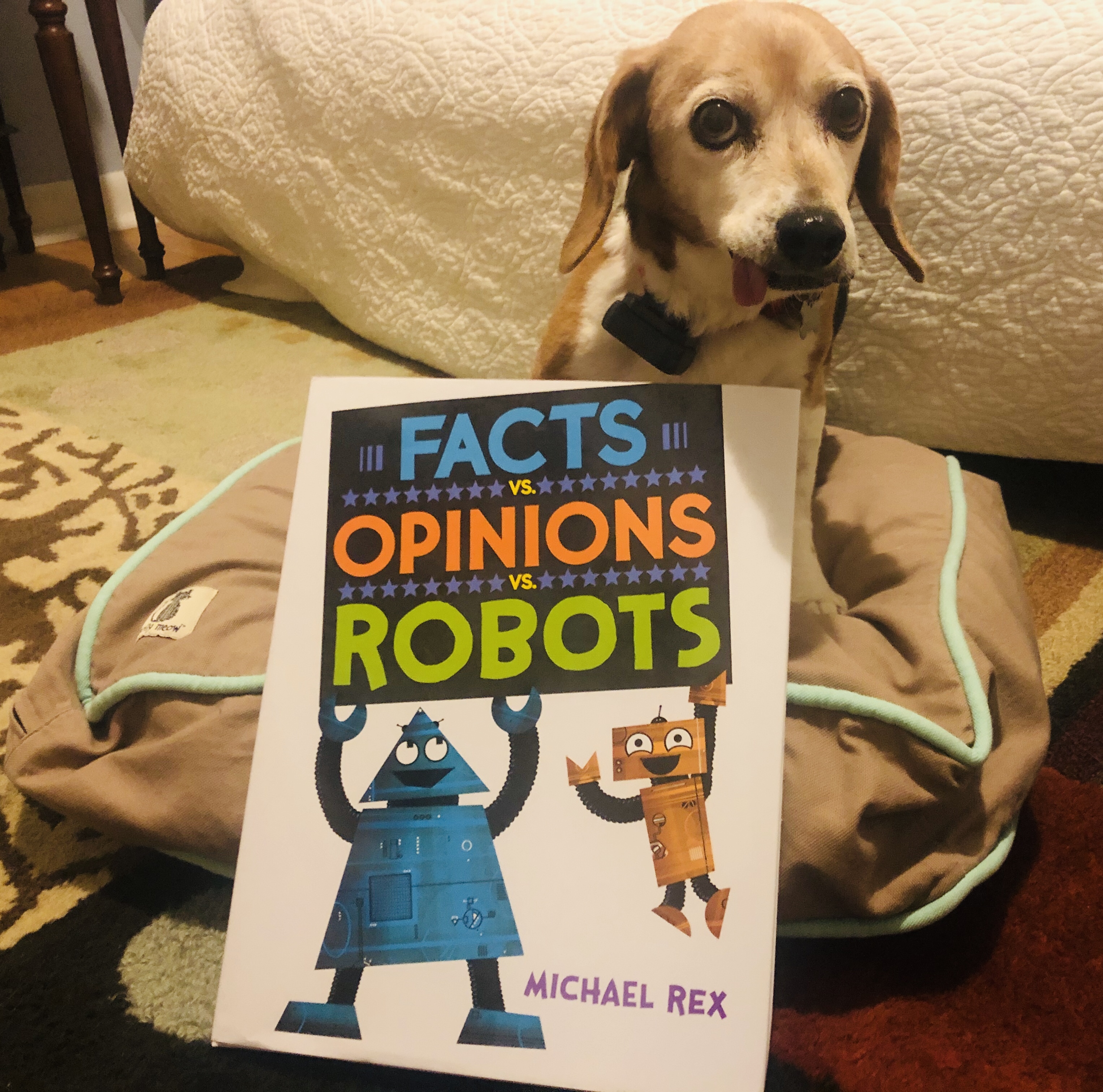 As a reading specialist, I love when I find a book that not only will make kids laugh out loud but also teach them critical life skills. As the title clearly suggests, Facts vs. Opinions vs. Robots teaches the difference between facts and opinions. But author/illustrator Michael Rex doesn’t stop there. Speaking directly to the reader, the robots also teaches that at times, one needs more information to decide if a statement is a fact or opinion. And in my humble opinion, the best lesson is the robots reminds us the importance of listening to each other’s opinions and respecting our peers’ right to think differently.