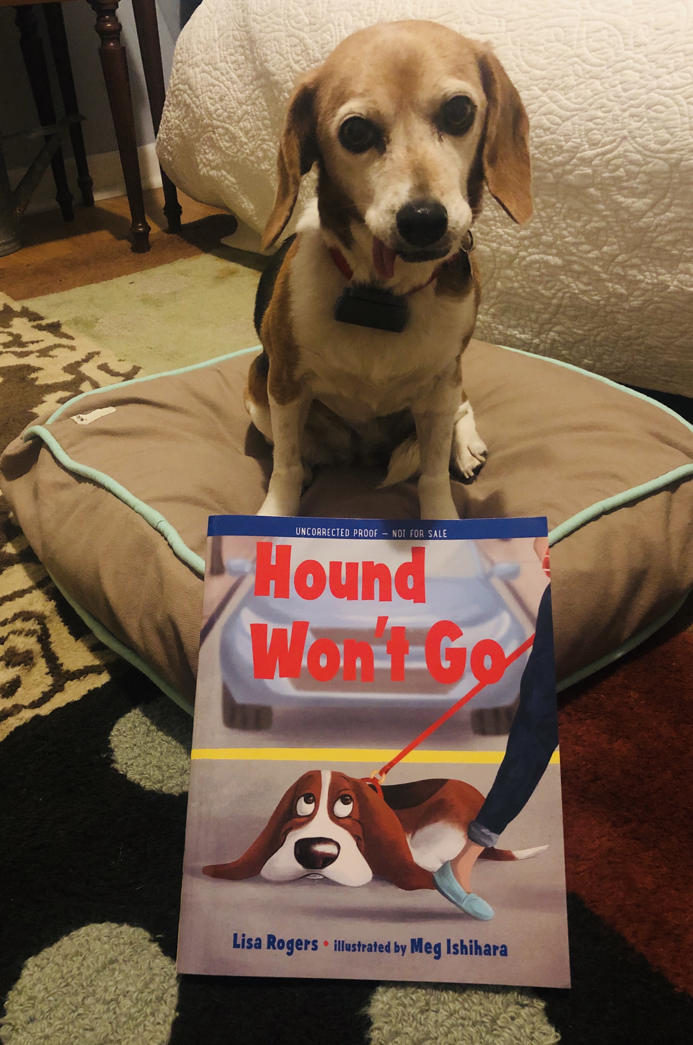Written in rhyming couplets, Hound Won’t Go is a perfect read aloud for young readers. I can already hear the children chiming in to finish the couplet. And kids will love the illustrator Meg Ishihara’s full page animated illustrations of adorable Hound. Thank you Albert Whitman & Company for sending an ARC of Hound Won’t Go to Beagles & Books for review. Look for Hound Won’t Go’s release in April 2020.
