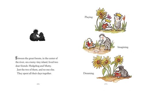 Publisher’s Summary: From a Caldecott Honor-winning artist comes a cozy classic-in-the-making about finding your friends and sticking together through thick and thin. “Our Friend Hedgehog feels like a modern-day Winnie the Pooh . It’s so warm and full of joy and love. It’s got classic written all over it.” –Victoria Jamieson, Newbery Honor-winning author of Roller Girl Sometimes you make a friend, and it feels like you have known that friend your entire life. . . . Hedgehog lives on a teeny-tiny island with only her stuffed dog, Mutty, for company. When a great storm carries Mutty away, she embarks on a quest to find her friend. Following the trail of clues Mutty left behind, brave Hedgehog meets a wiggly Mole, a wordy Owl, a curmudgeonly Beaver, a scatterbrained Hen and Chicks, and a girl who’s new to the neighborhood, Annika May. With bravery and teamwork, there’s nothing that can stop these seven from finding Mutty, but along the way they discover something even more important: each other. The first book in a new series from Caldecott Honor winner Lauren Castillo, Our Friend Hedgehog: The Story of Us has the feel of a timeless classic, introducing an unforgettable cast of characters who will star in many more adventures to come. Review: The first book in the Our Friend Hedgehog series, The Story of Us tells how Hedgehog’s circle of friends grew. At first, it was just Hedgehog and Mutty, two friends living on an island.