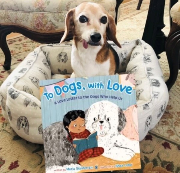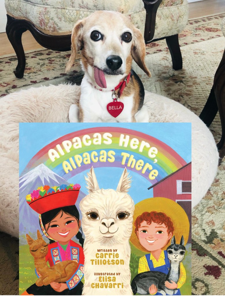 Bella joined Etta in helping me promote kid-lit on my Beagles and Books blog. Surprisingly, Bella’s signature tongue out didn’t appear on camera yet.